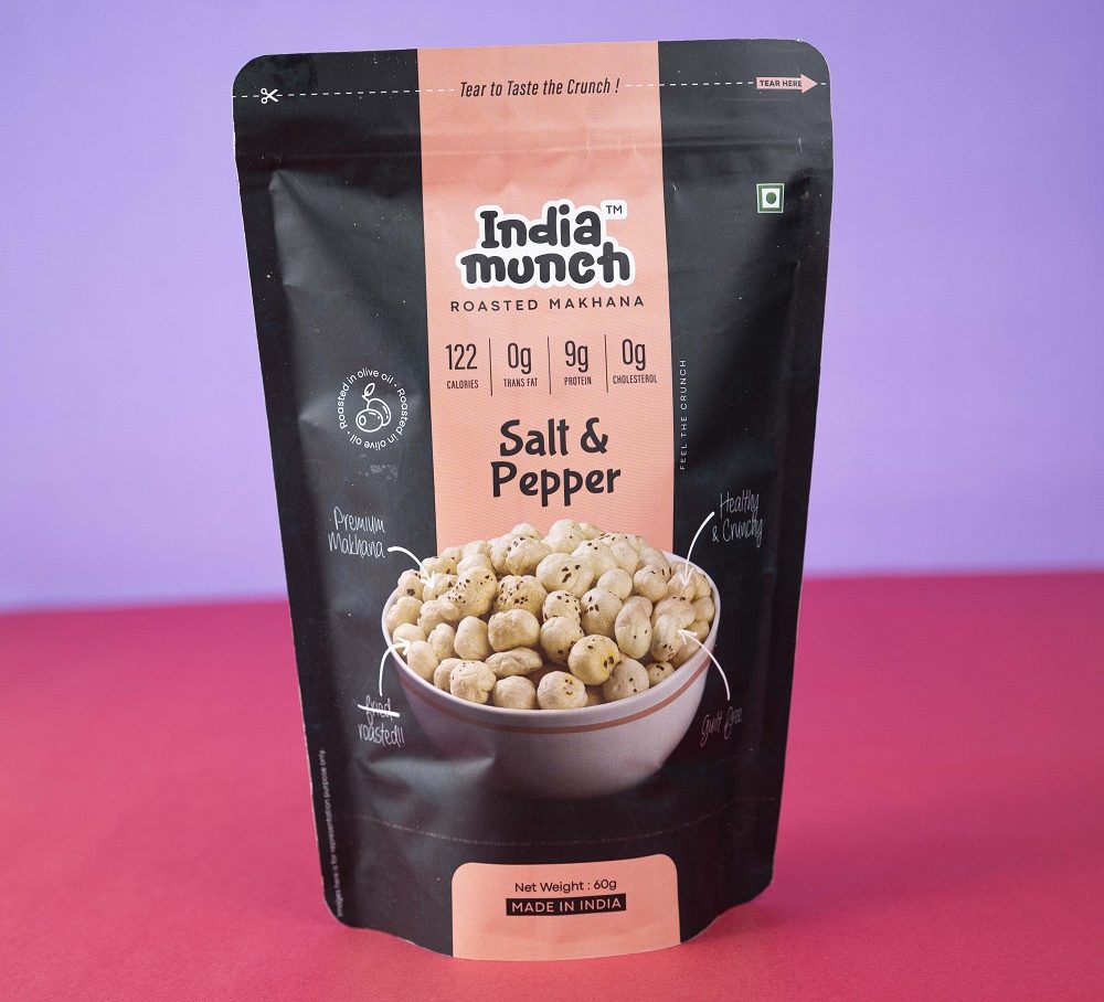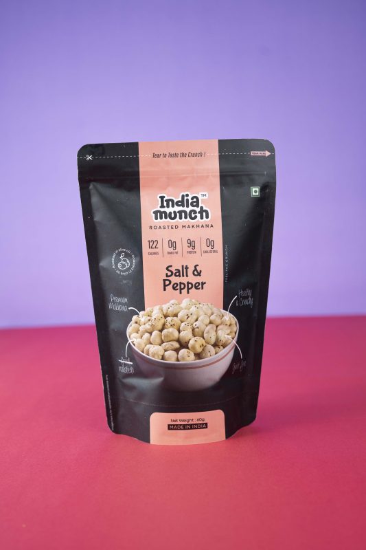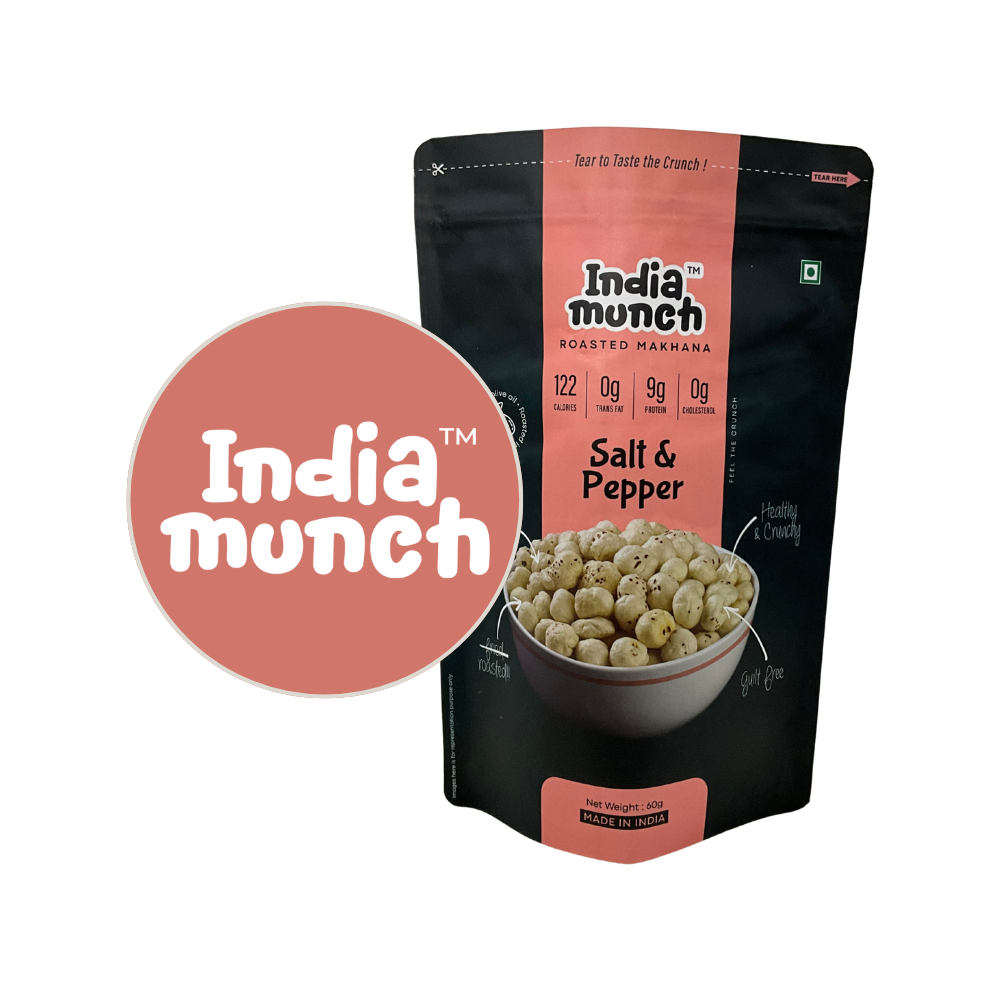 Enjoy the timeless taste of India Munch Salt & Pepper Roasted Makhana. Simple yet flavorful, this crispy and nutritious snack is perfect for mindful munching anytime, anywhere.