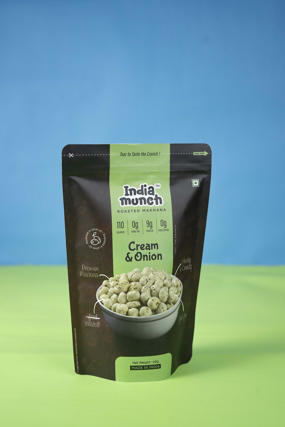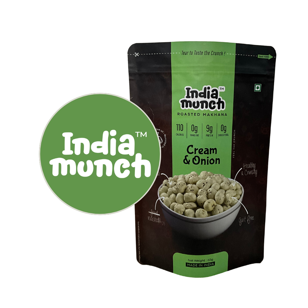 Indulge in the rich, creamy taste of India Munch Cream & Onion Roasted Makhana. Light, crispy, and packed with flavor, it’s the ultimate guilt-free snack for any time of the day!