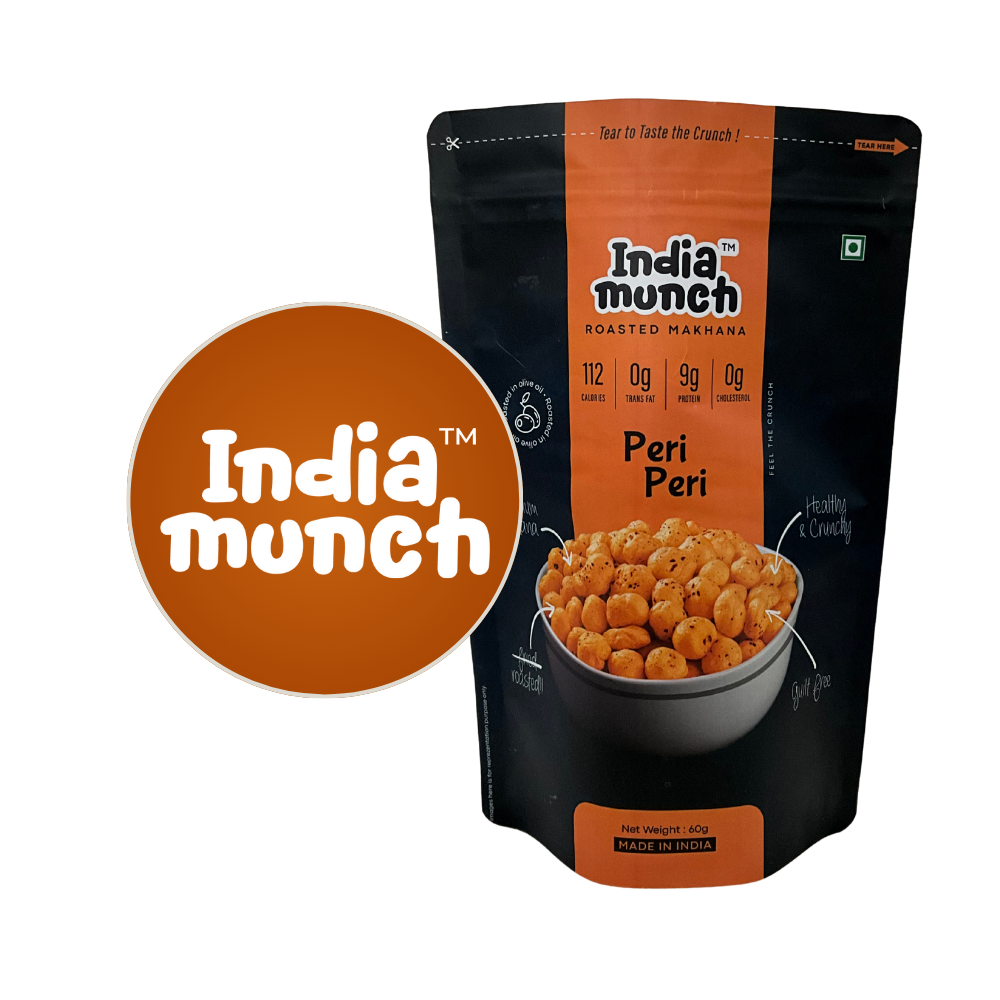 Turn up the heat with India Munch Peri Peri Roasted Makhana! Roasted to perfection and coated with a tangy, spicy seasoning, it’s the perfect treat for those who love a little kick in every bite.