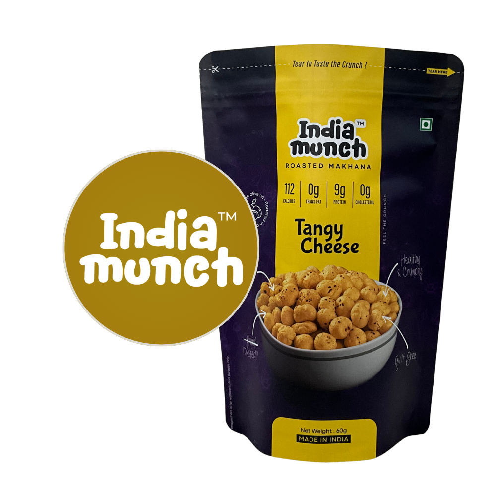 Satisfy your cheese cravings with India Munch Tangy Cheese Roasted Makhana! With a perfect balance of cheesy goodness and tangy zest, this crunchy snack is pure indulgence in every bite.
